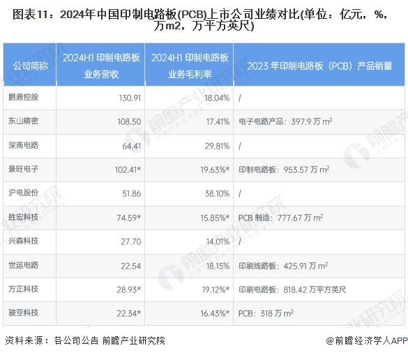 注:景旺电子、胜宏科技、方正科技、骏亚科技营收和毛利率数据为2023年,其余上市企业为2024年H1