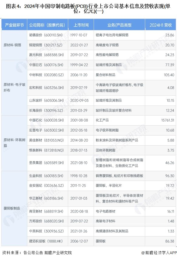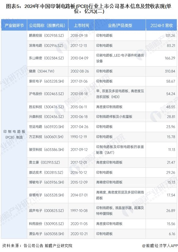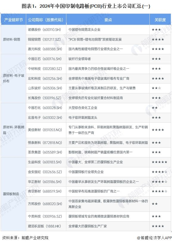 1、 印制电路板(PCB)产业上市公司汇总