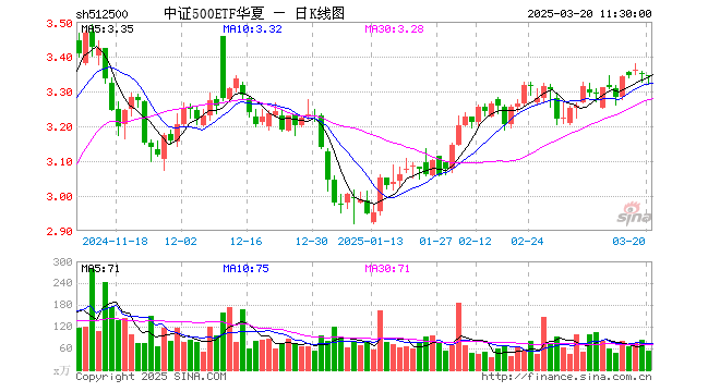 中证500ETF华夏(512500)跌0.12%,半日成交额1.81亿元