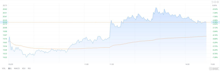 3月20日,博实股份开盘跳水,盘中最高跌幅超7%。截至发稿时,虽股价有所回升,但仍跌2.36%,现报20.24元。
