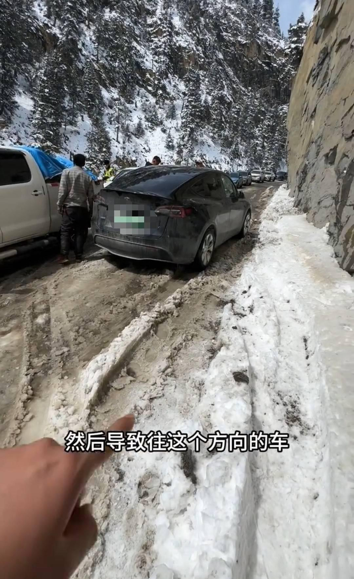 特斯拉停路上致318国道拥堵?当地警方:降雪致车辆打滑,车主去买防滑链了