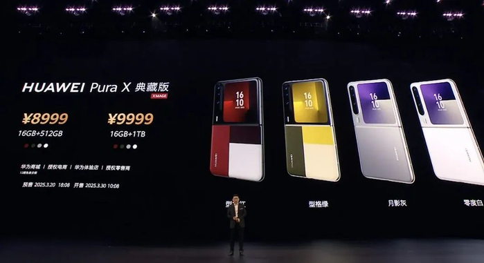 据悉,Pura X新机12GB+256GB售价7499元,12GB+512GB售价7999元;典藏版16GB+512GB售价8999元,16GB+1TB售价9999元。3月30日正式发售。