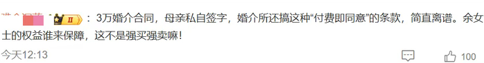 有网友直呼自己也有过类似经历,并且对于代签名和婚介服务合同条款的有效性和合法性表示质疑。“付费即同意的条款简直就是强买强卖”“合同处处逃避责任、居心叵测”。
