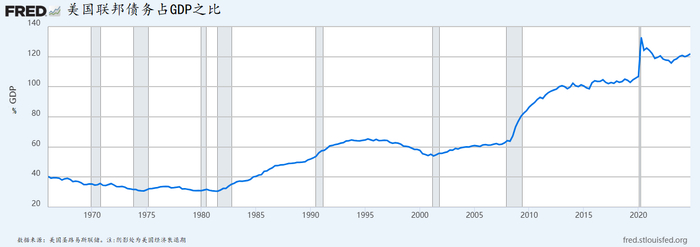 国际货币基金组织预计,到2034年,美国每年的利息支出将达到1.7万亿美元,未来十年的累计利息成本将接近12.9万亿美元。美国目前的债务总额为102万亿美元,占全球债务总额的34.6%。