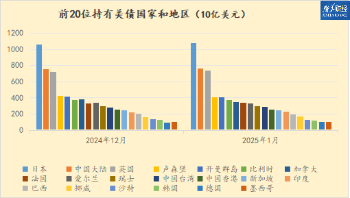数据显示,1月份,外国政府和机构持有美债规模为8.526万亿美元,与上月基本持平。与一年前相比,外国持有的美债上涨了7.2%。2024年9月,外国持有的美债一度达到创纪录的8.679万亿美元。