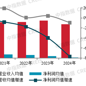 3月20日,中指研究院发布《2025中国房地产百强企业研究报告》显示,去年百强房企营业收入均值为338.2亿元,同比下降9.4%;净利润均值同比下降76.8%至4.2亿元。2024年,百强房企净利润率、净资产收益率均值分别为1.1%、0.3%,盈利能力连续多年下降,接近“零利润”。