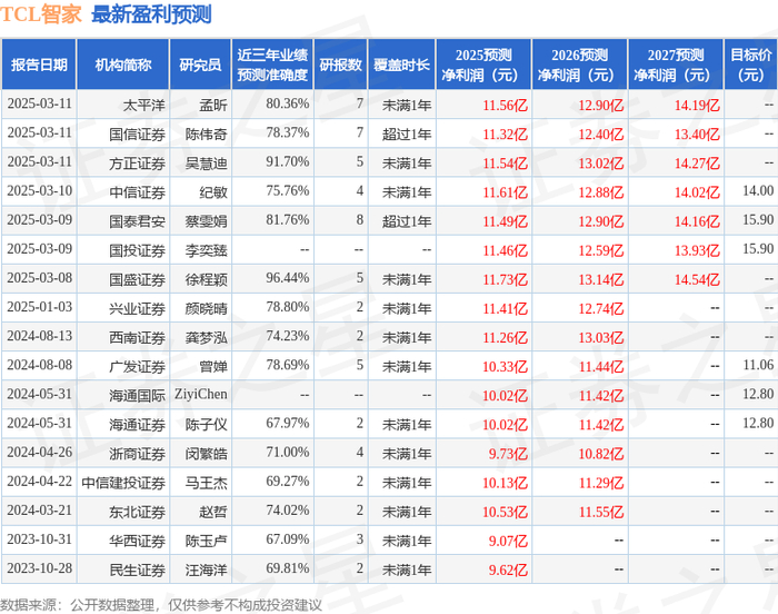 以下是详细的盈利预测信息: