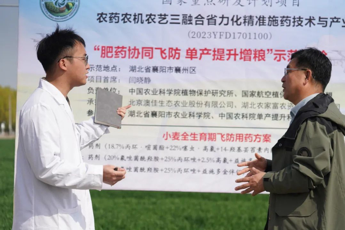 中国农业科学院植物保护研究所研究员、农药农机农艺三融合省力精准施药技术与产业项目襄州区项目首席专家闫晓静在现场表示:“这种技术的应用,真正实现了农药、肥料、农机、农艺的深度融合。通过腐植酸肥药协同飞防,我们能够更好地应对小麦病虫害,同时促进小麦生长,为单产提升奠定坚实基础。”