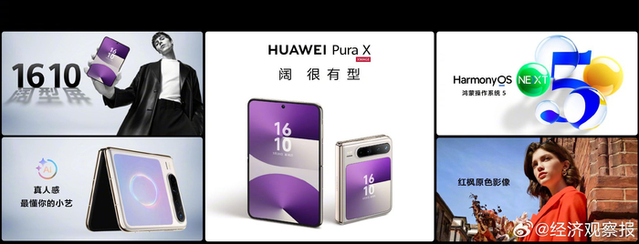 【华为今日发布首款阔折叠,带来#华为PuraX四色典藏#】
