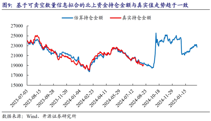 我们估算了可卖空数量在30万股以下的个股构成的组合每日的净流入水平,并将其与当天北上资金真实净流入金额进行对比,以观察是否可以通过少部分个股的净流入水平来近似折算出当天北上资金总体净流入水平。