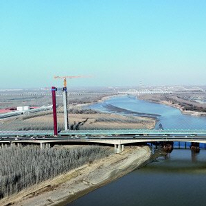 京台高速齐河至济南段黄河特大桥施工现场 本报通讯员 戎宁 魏志尚