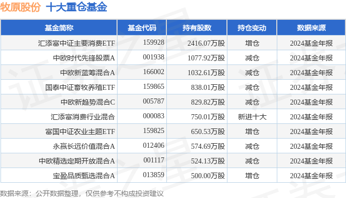 持有牧原股份最多的基金为汇添富中证主要消费ETF,目前规模为135.21亿元,最新净值0.8234(3月20日),较上一交易日下跌1.32%,近一年下跌5.25%。该基金现任基金经理为过蓓蓓。