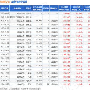 分析师工具显示:证券研究员普遍预期2025年业绩在187.36亿元,每股收益均值在3.43元。