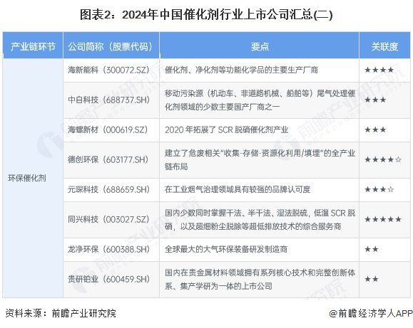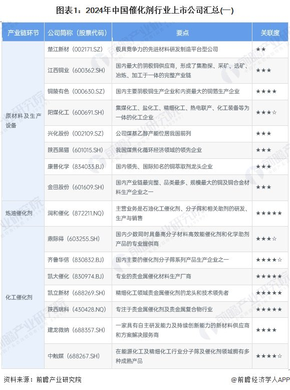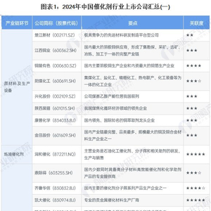 催化剂在中国工业领域的应用十分广泛,主要应用于石油加工、化学工业等领域。近年来,随着我国工业的快速发展,以及新兴领域的需求增加,催化剂行业也迎来了新的发展机遇。目前,我国催化剂产业的上市公司数量较多,主要分布在产业链上游和中游。