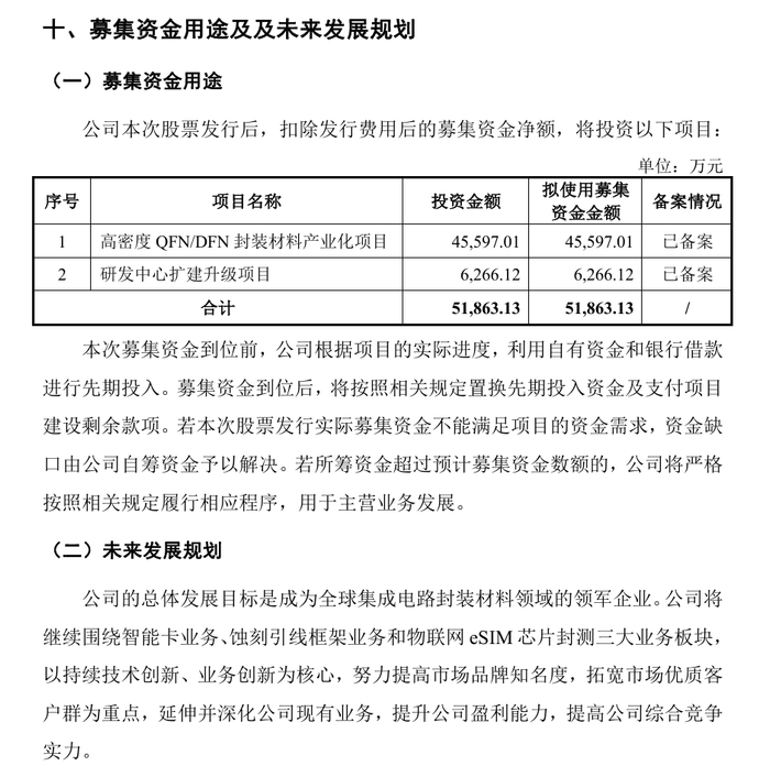 募资用途:拟募集5.19亿元,投向高密度封装材料产业化及研发中心扩建,目标突破高端封装技术瓶颈。