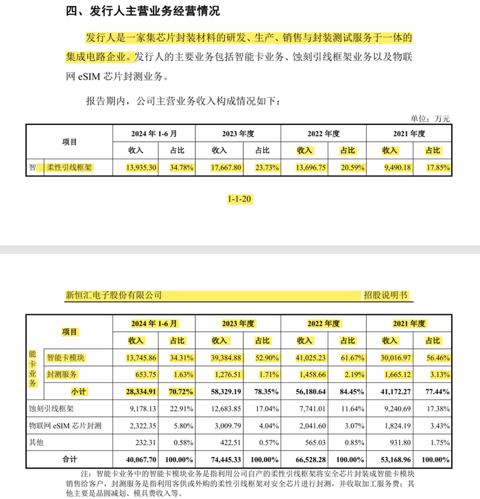 智能卡业务是发行人的传统核心业务,主要包括智能卡芯片关键封装材料柔性引线框架产品的研发、生产和销售,以及主要依靠自产的柔性引线框架向客户提供智能卡模块产品或模块封测服务。报告期内,发行人的主要收入和利润来源于智能卡业务。