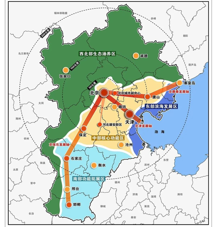 唐山与京津深度捆绑,北部的廊坊、保定、张家口向北京看齐;南部的邢台、邯郸又被划入中原城市群范围。