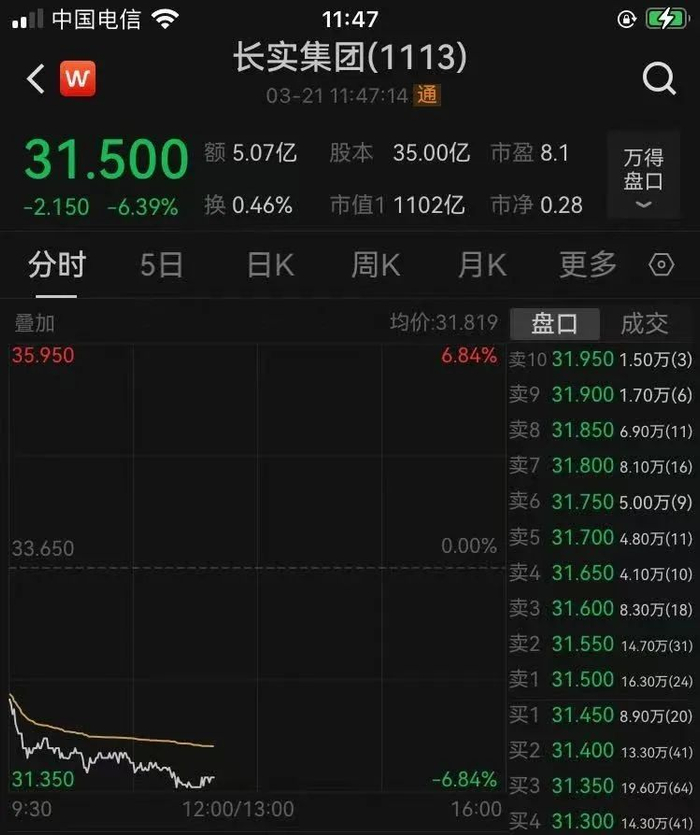 突发,李嘉诚旗下多家公司股价下跌!长实集团跌超6%,长和11天市值蒸发323.6亿港元