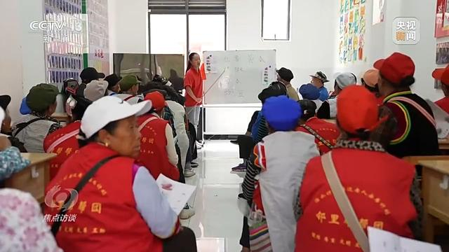 和谐社区的普通话课堂,针对的是社区里年纪大、不会讲普通话的少数民族居民,像这样的普通话课堂每周都会定期举办。