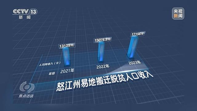 云南省怒江州发展和改革委员会党组成员 张庆华:全州易地搬迁脱贫人口收入统计表显示,2021年,易地搬迁脱贫人口的人均纯收入是1.3万元,2022年,是1.5万元,增幅达14.8%。2023年是1.7万元,增幅达到13.77%。