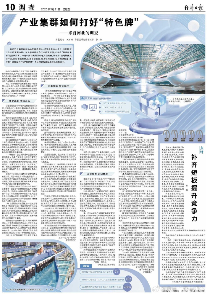 在河北,有许多像高阳毛巾纺织产业这样坚持创新驱动发展、形成较强竞争力的特色产业集群,但也有一些产业集群存在创新体系不健全、优质创新主体占比少等问题。如何破局?