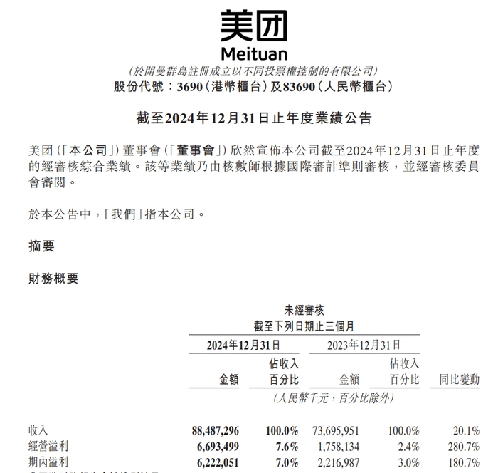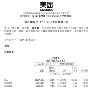 3月21日,美团(3690.HK)发布2024年第四季度及全年业绩。