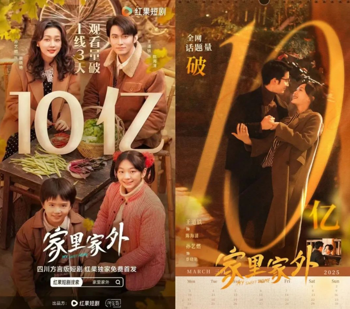 当《哪吒之魔童闹海》(下称《哪吒2》)全球票房突破150亿元之际,四川影视产业再度破圈:截至3月17日晚间,全体采用地道四川方言、以1981年川渝特大洪水为背景的《家里家外》在红果平台累计播放量突破10亿次,抖音相关话题阅读量同步突破10亿次。