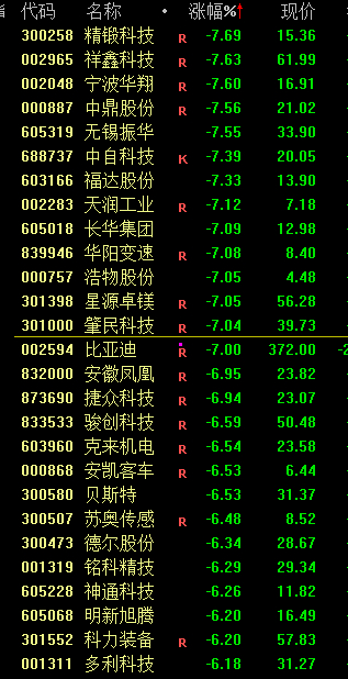 汽车板块大跌,比亚迪跌7%。