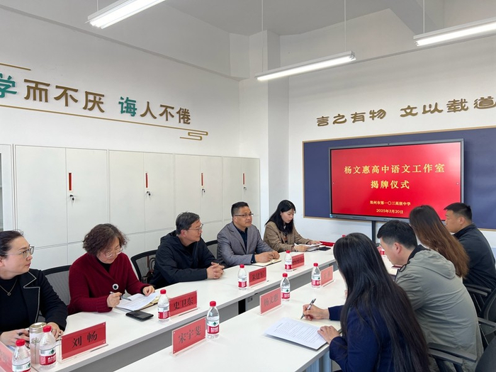中原网讯(赵文源 通讯员 陈乐乐)3月20日下午,杨文惠高中语文名师工作室在郑州市第一〇三高级中学尚同楼举行揭牌仪式,郑州103高党支部书记、校长孙国岩,副校级干部、教师发展中心负责人史卫东,特邀郑州市基础教育教学研究室教研员朱建军与工作室全体成员共聚一堂,共同见证这一属于郑州103高名师培养和教师发展的重要时刻。