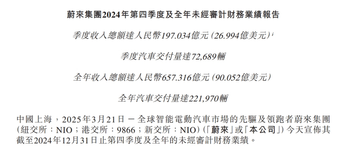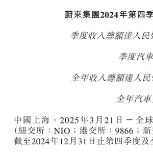 3月21日,蔚来发布2024年四季度和全年财务业绩。