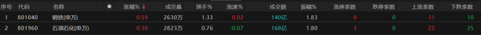 盘面上,从申万一级行业指数来看,31个申万一级行业中仅钢铁、石油石化两个行业板块收涨,其余29个行业板块全部收跌。