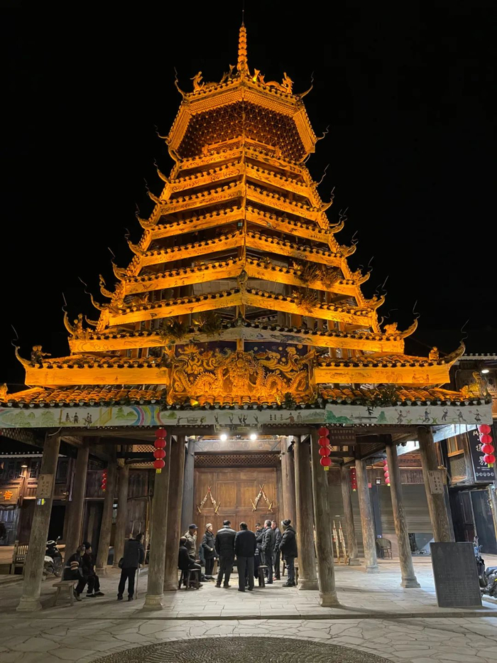 夜幕降临,“信团鼓楼”下总有村民围坐在一起,或唱歌或聊天,在增进彼此感情的同时,也商议村寨发展,化解邻里矛盾。