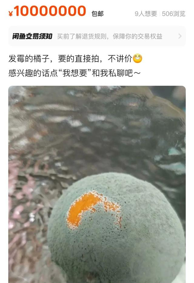 有的“自然霉变”,一整袋7个,售价1888元;还有标着 “青霉菌” 的发霉橘子,原价6000元,现价500元,也有1人有意购买。