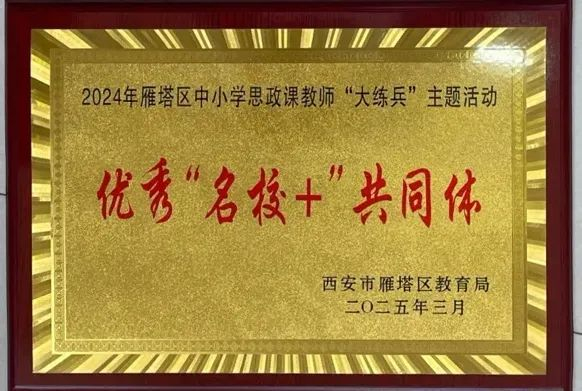 阳光讯(记者 杨小娟)在雁塔区2024年度思政课教师"大练兵"活动中,大雁塔小学教育集团、石桥华洲城分校区级“名校+”共同体被评为“优秀‘名校+’共同体”,大雁塔小学雁南分校、雁塔区第三小学荣获“优秀学校”称号!