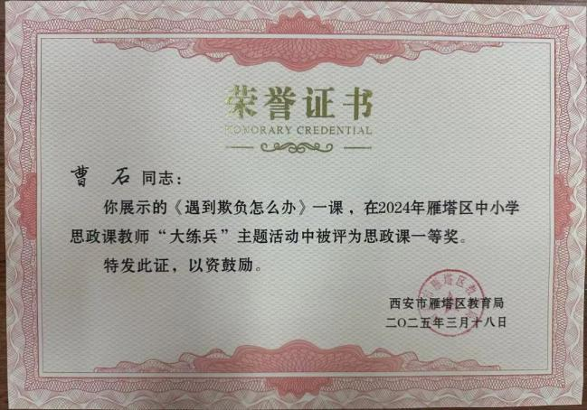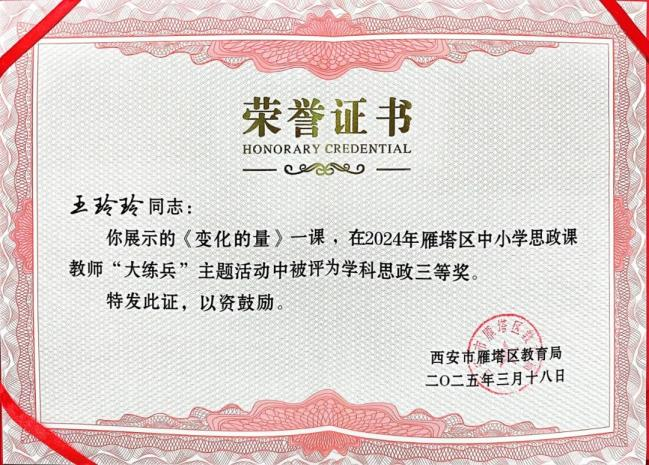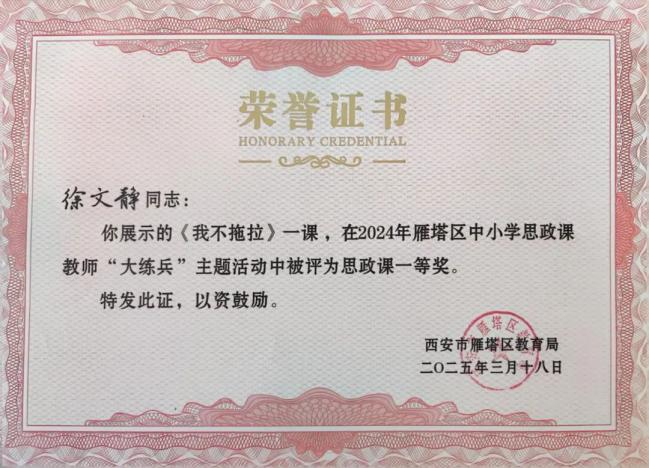 大雁塔小学教育集团在2024年西安市雁塔区思政课教师大练兵活动中获奖