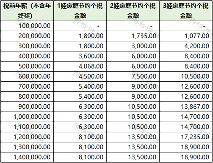 标准调整后,3娃家庭最高可节约个人所得税1.89万元。
