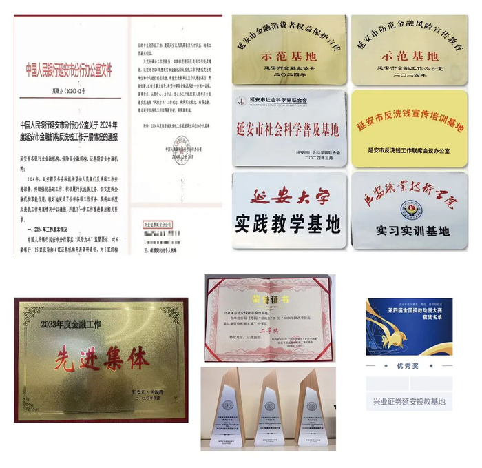 2024年,是兴业证券延安投教基地成立的第二年,是奋斗年,是成长年,也是收获年。在品牌建设上,我们获批延安市社科普及基地、延安市防范金融风险宣传教育示范基地、延安市金融消费者权益保护宣传示范基地、延安市反洗钱宣传培训基地、延安大学实践教学基地;在活动组织上,我们荣获“延安市金融工作先进集体”“2024年度延安市反洗钱工作成绩突出单位”;在投教产品上,我们制作的《远山花开》荣获深交所、《人民日报》漫画增刊、证券时报社“第四届全国投教动漫大赛”优秀奖;打造的《枣园“原始股”》荣获陕西省2024年“守住钱袋子·护好幸福家” 防范非法集资短视频大赛二等奖;还有《延安红色金融史与注册制》等三个作品荣获陕西辖区优秀投教产品奖。