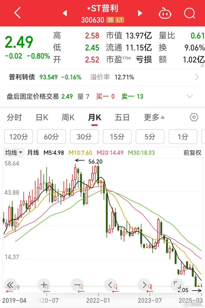 值得注意的是,*ST普利曾在2021年期间股价创出高点,最高达到了56.2元/股,总市值一度超过250亿。不过,之后股价便开始下滑,截至3月21日最新收盘价为2.49元/股。