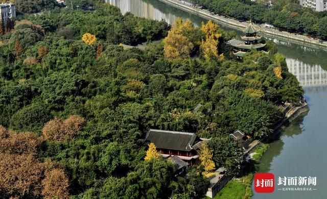 从望江路出发,自南大门步入望江楼公园,沿着锦江朝东北方向而行,一路上茂密的竹子成为了天然的“屏障”,隔绝了阳光的直射,透露出点点温和的光。