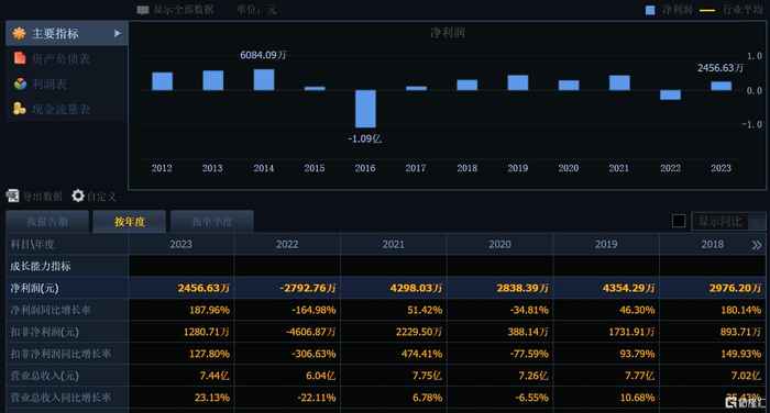 2020年-2023年,神开股份分别实现净利润2838.39万元、4298.03万元、-2792.76万元、2456.63万元,同比-34.81%、51.42%、-164.98%、187.96%。
