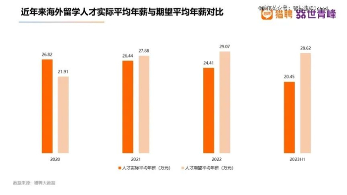 数据显示,近几年海外留学生的实际年薪在不断下滑,而且降幅相当明显,就连留学生自己也“认命”了,期望薪资随之下降。