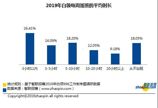 《2019年白领996工作制专题调研报告》显示,从不加班的比例不到两成