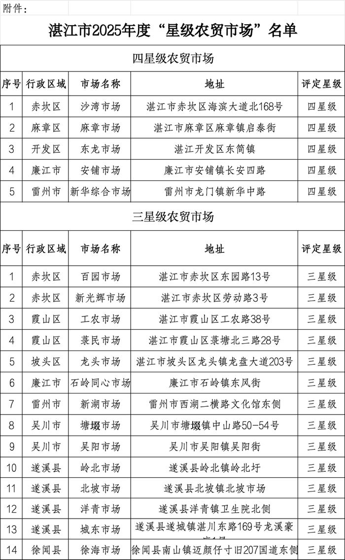 2025年湛江市“星级农贸市场”承诺申报活动