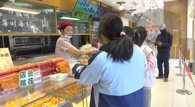 南昌某糕点店 工作人员 :现在是销量卖得最好的,销冠,每天要卖三百多盒,晚上的时候,顾客多到这条过道排满。