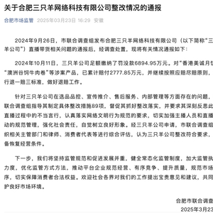 停播180多天后,三只羊迎转机!合肥通报:罚没、赔付近1亿元,具备恢复经营条件!公司再次致歉,合作品牌压减80%