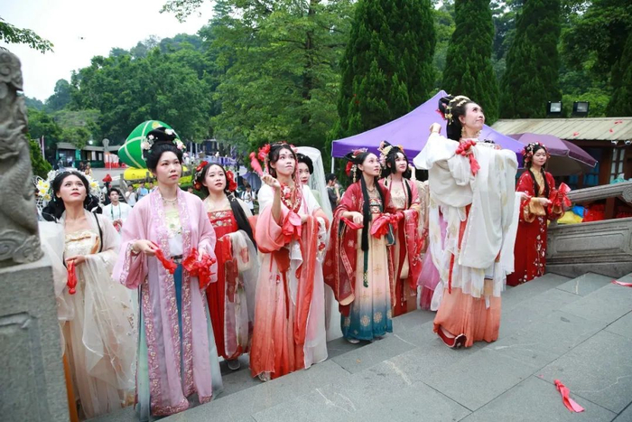 活动内容:在鼎湖山花朝节,你将看到十二花神与状元接亲大巡游,看到仙子们身着汉服,或翩翩起舞,或轻吟浅唱,重现古代花朝节的盛况。你还可以游玩花朝市集,体验传统手作。