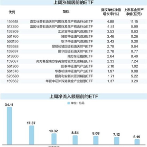 分主题来看,上述22只ETF中,油气和黄金主题ETF涨幅居前。嘉实、富国标普石油天然气勘探及生产精选行业ETF复权单位净值增长率超过4.8%;汇添富、博时、银华中证油气资源ETF净值增长率超过3.4%。华夏、华安、永赢、工银、国泰中证沪深港黄金产业股票ETF增长率超过1.2%。