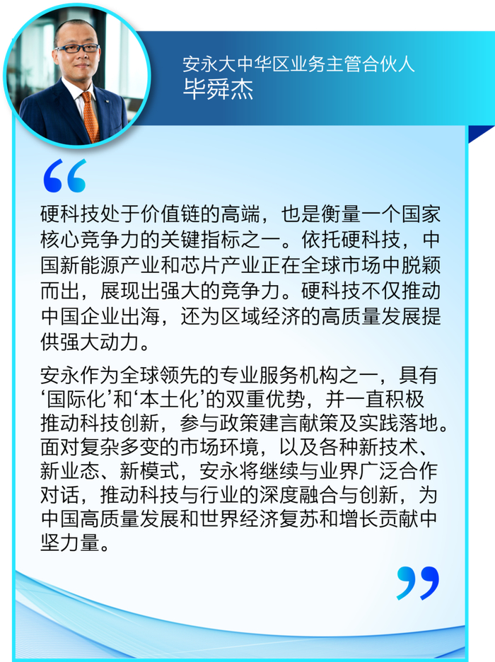 从发展潜力看,新一轮科技革命和产业变革正在孕育兴起,我国在人工智能、新能源、高端制造等前沿领域取得显著进展。而中国的‘工程师红利’与市场规模优势,以及新兴产业的新一轮资本开支也将对短期经济形成强大拉力。毕马威中国时刻关注并在连接更多企事业机构,共同促进中国‘新质生产力’的培育和发展,我们有信心看到,中国科技创新和产业创新融合将支持中国经济进一步走向繁荣。
