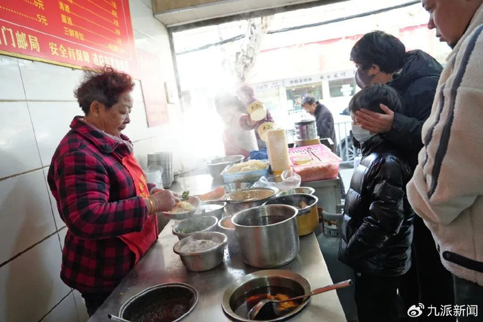 店老板余阿姨,原是武汉老字号国营餐馆芙蓉酒楼的职工,下岗后开了家副食店兼卖早点。君君是余阿姨儿子的名字,现在店子主要交给他在打理。这里最受欢迎的,莫过于那不加卤水、挂满浓郁芝麻酱的热干面。入口即哽,满嘴留香。