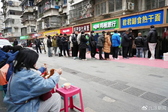 君君副食热干面店里没几张桌椅,但不妨碍协和医院、体育场以及附近的居民,端着碗去路边小凳上大口咀嚼。老饕们到手后,拌、反复拌,是必不可少的动作,"这面拌的不是酱,是老武汉码头的喧嚷。"